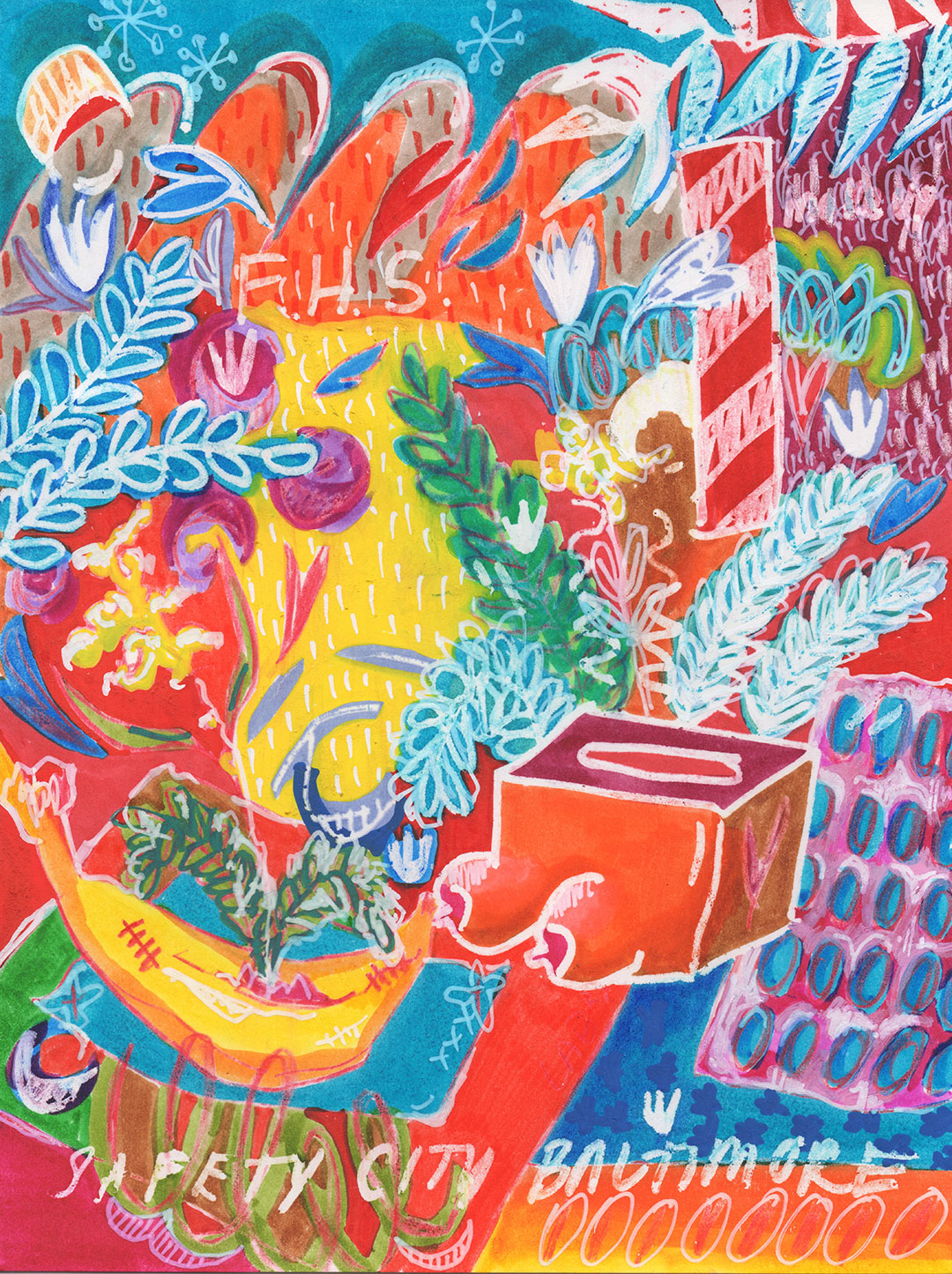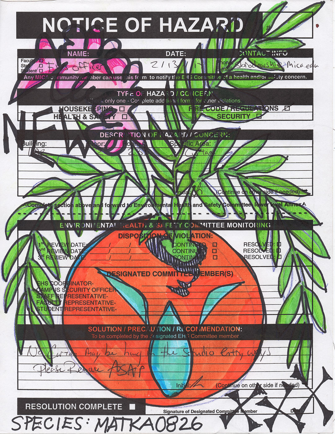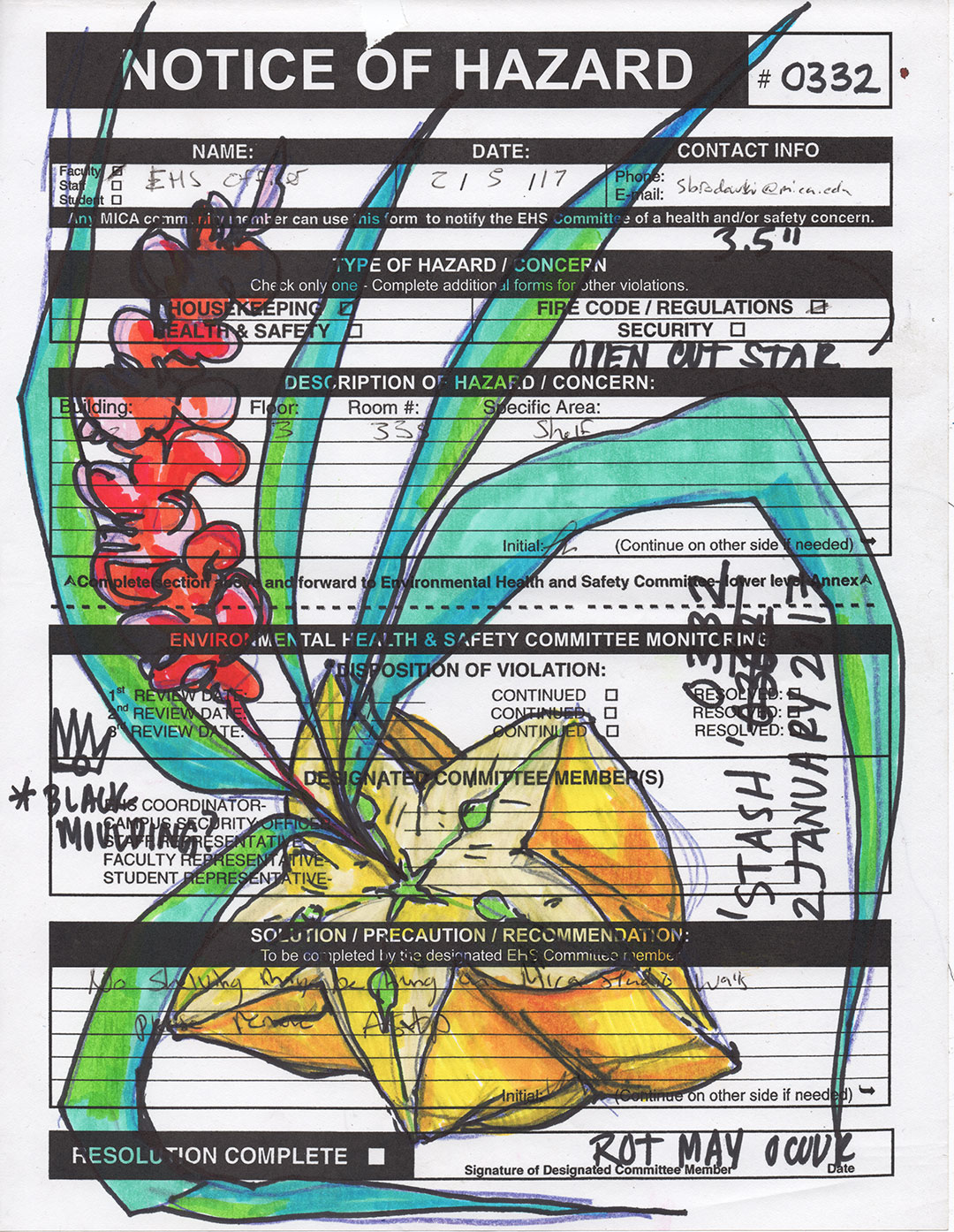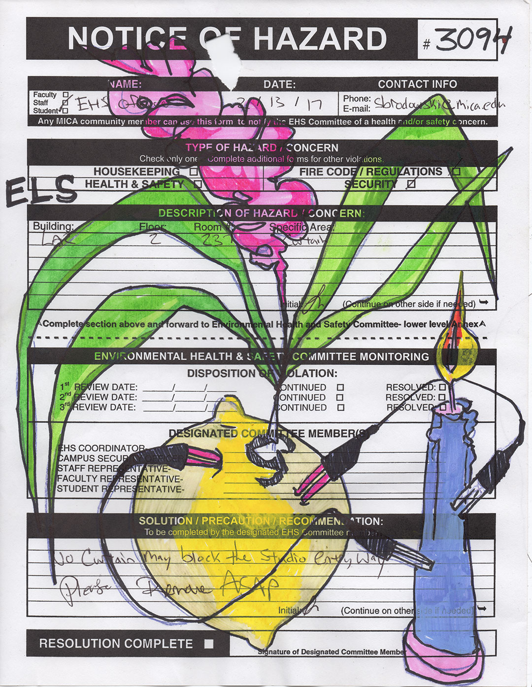 2017 - Drawings on Hazard Notice’s Left on Studio Door